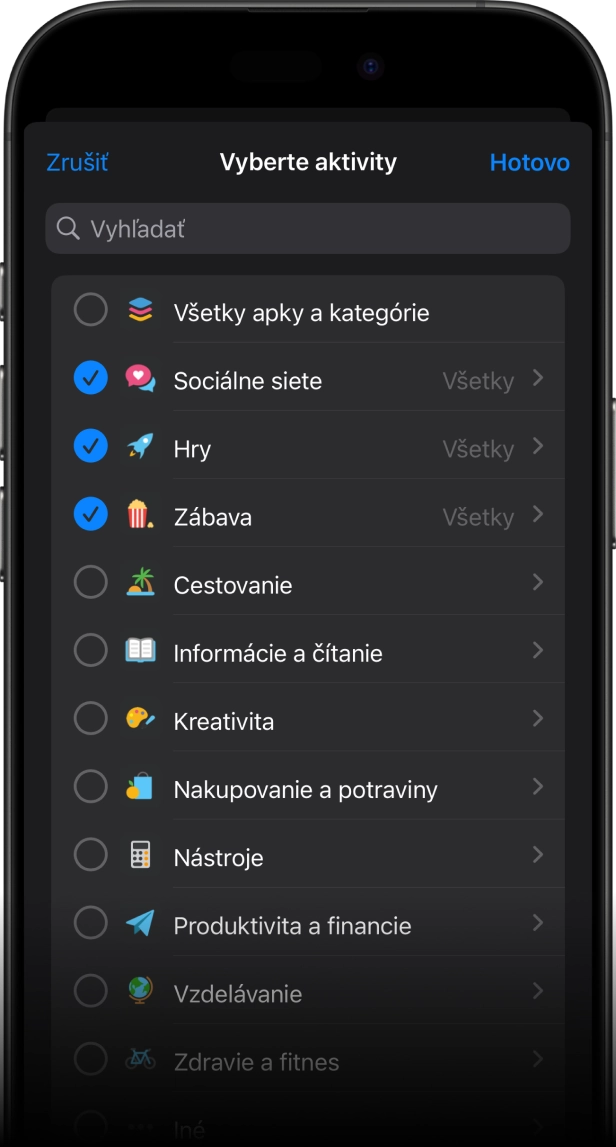 Zvoľ aplikácie, ktoré ťa najviac rušia a tie budú dočasne zablokované.